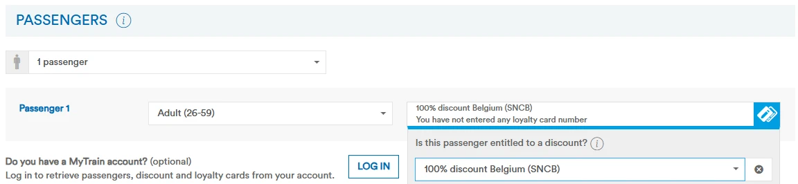• 100% Discount Belgium (SNCB)